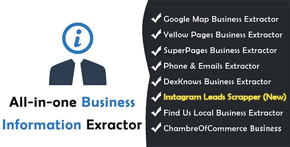 All-in-one Business Information Extractor is a Complete Solution to extract business information based on keywords and locations from 8 Platforms (Google Map, Yellow Pages,…).