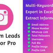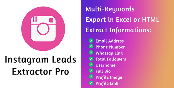 Instagram Leads Extractor Pro(with multi-keywords) is a smart and advanced tool that can extract accounts based on the keyword(s), the tool extract this information: Username, Email Address, Phone Number, WhatsApp Link, Username, Total Followers, Full Bio, Profile Link, Profile Image.