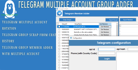 Telegram Multi Account Channel/Group member Scraper and Adder – Software have below functionality